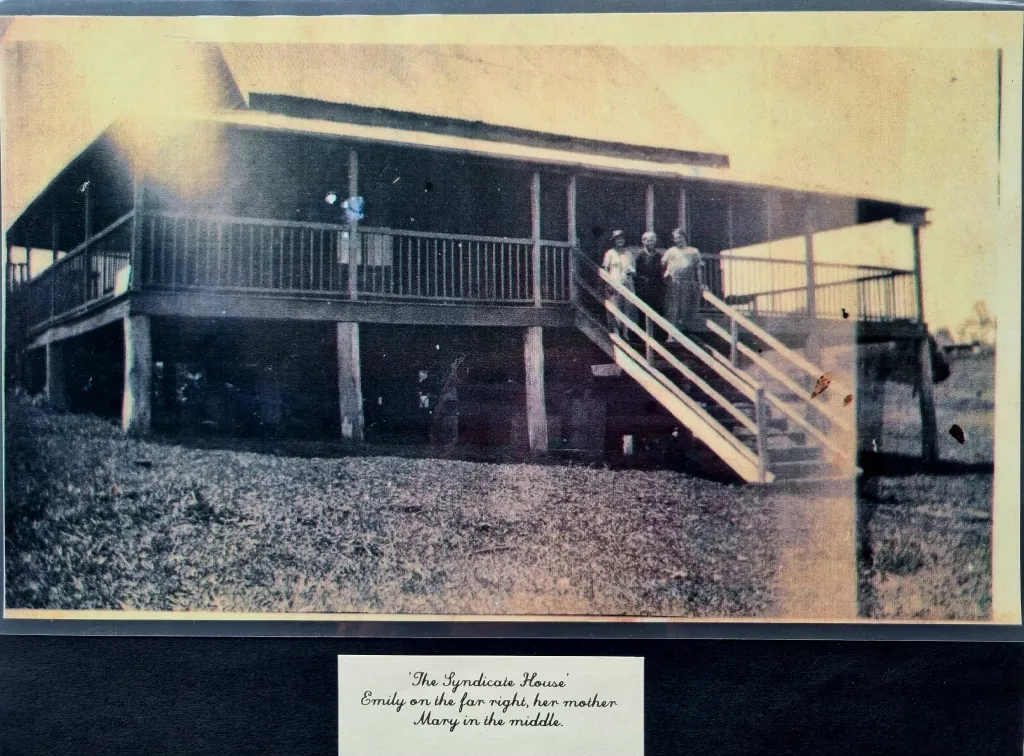 Emily Jane Franklin (nee Curtis) was born on the 22nd May, 1887 to Edmund and Mary Curtis who were one of the first families to live permanently on Tamborine Mountain. The family lived in a small slab home with the usual shingle bark roof common in that era. This house vast became too small as the size of the family increased. In 1901 when Emily was thirteen years old, her imagination was fired by vague references by her parents of this mystery “Syndicate House”, and she decided to enlist the aid of her two brothers and sister to set off one day to see if they could locate this old home. With directions from their father, they set off from home full of excitement and after some considerable time and forcing their way through dense rainforest, they arrived upon what had obviously been a clearing. There before their eyes was the most wonderful house they had ever seen.